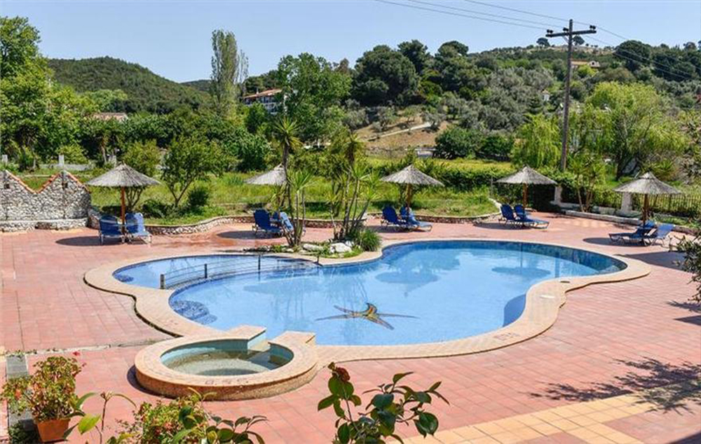 Vila Roula je novijeg datuma i nalazi u gradu Skiatosu, na oko 700 metara od strogog centra i oko 150 metara od najbliže autobuske stanice. Od najbliže plaže, Megali Amos, je nešto manje od oko 900 metara ili 2 autobuske stanice. Vila Roula je smeštena u lepom dvorištu sa zelenilom i cvećem. Dvokrevetni i trokrevetni studiji su na prizemlju, četvorokrevetni apartmani na prizemlju i prvom spratu, a prelepi četvorokrevetni+2 i petokrevetni+2 dupleks apartmani se nalaze na prvom spratu. Studiji sadrže opremljenu kuhinju, deo za spavanje s francuskim, odnosno tri standardna ležaja, kupatilo i lepe velike terase sa garniturom za sedenje u prirodnoj hladovini i zelenilu. Veličina studija je cca 20 - 23 kvm + terasa. Četvorokrevetni apartman se sastoji od sobe u kojoj je kuhinja i dva standardna ležaja, spavaće sobe sa dva standardna ležaja, kupatila i terase s garniturom za sedenje, odnosno dela dvorišta s garniturom za sedenje. Veličina apartmana je cca 30 kvm + terasa. Četvorokrevetni+2 i petokrevetni+2 dupleks apartmani se sastoje od dnevnog boravka s kuhinjom i trpezarijom u kojoj je klima uredjaj i TV, dve spavaće sobe sa po francuskim i dva standardna ležaja, kupatila i lepe, velike terase s garniturom za sedenje. Petokrevetni dupleks u dnevnoj sobi ima dodatni standardni ležaj i sofu na otvaranje na kojoj može da spava dvoje dece do 12 godina, (što ima i četvorokrevetni+2). Veličina apartmana je cca 45 kvm + terasa. Svi studiji i apartmani su opremljeni TV – om, wi – fi Internetom i klima uredjajem (uz doplatu na licu mesta (opcija), 8 eura dnevno po studiju/apartmanu). Vila Roula je B + kategorije, ima peškire i ima mogućnost sopstvenog parkinga. Najbliži mini market je udaljen oko 120 metara.