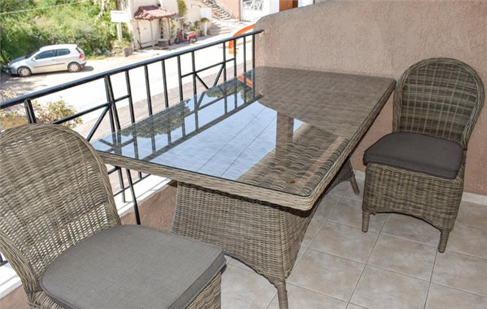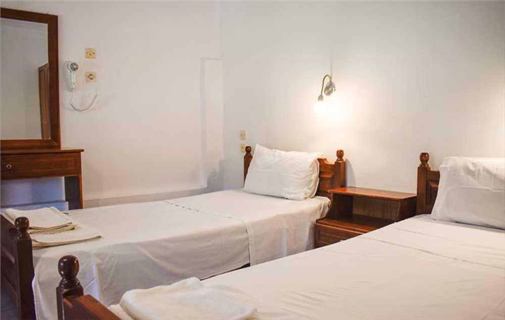 Vila Maria se nalazi u lepom mediteranskom vrtu, na idealnoj lokaciji, oko 800 metara od centra grada, na svega oko 170 metara od prelepe i jedne od najpoznatijih plaža na ostrvu, plaže Megali Amos (Velika plaža). Dvokrevetni i trokrevetni studiji vile Maria su smešteni na prvom spratu, a četvorokrevetni apartman na malo izdignutom prizemlju i svi su sa pogledom na dvorište. Opremljeni su klima uredjajem (uračunat u cenu), wi - fi Internetom i TV - om. Dvokrevetni i trokrevetni studiji sadrže opremljenu malu kuhinju sa delom za spavanje sa dva, odnosno tri standardna ležaja, kupatilo i lepu terasu sa garniturom za sedenje. Veličina studija je cca 18 – 20 kvm + terasa. Četvorokrevetni apartman se sastoji dnevnog boravka u kojem se nalazi dobro opremljena kuhinja (veliki frižider sa zamrzivačem, šporet sa rernom...) trpezarijski sto, ugaona sofa na kojoj može spavati dvoje dece do 12 godina, kupatila i velike terase sa garniturom za sedenje i pogledom na vrt. Veličina apartmana je cca 33 kvm + terase. Vila Maria je B kategorije, ima peškire i javni besplatni parking preko puta vile. Najbliži mini market je ispred vile, a autobuska stanica u neposrednoj blizini. Vila je idealna za mlade zbog blizine grada, ali i za porodice, jer je plaža u neposrednoj blizini, ima zidani roštilj i dvoršte koje je na raspolaganju deci.