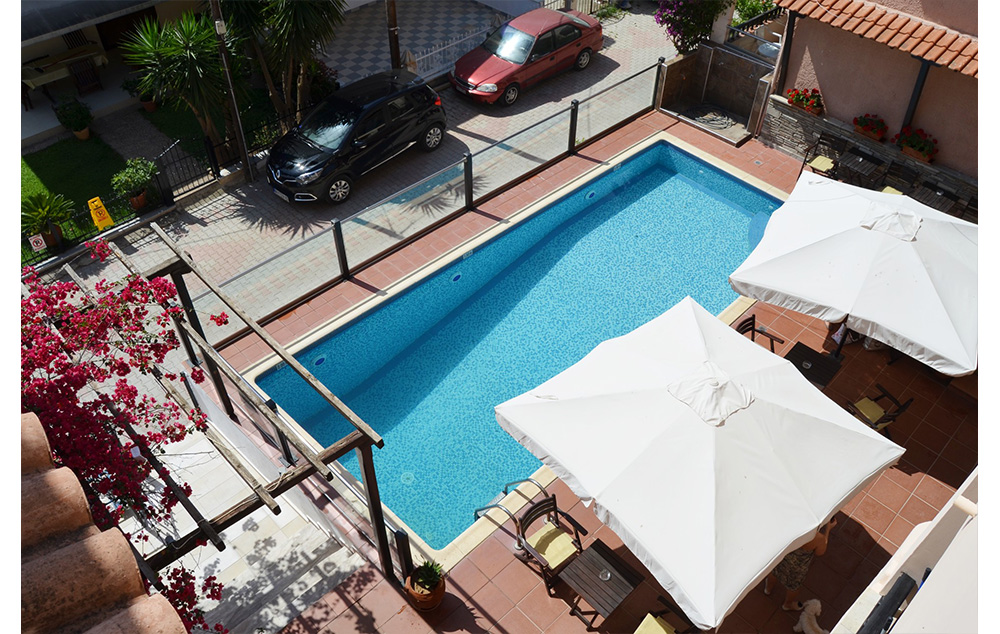 Opis: Poseduje dvokrevetna studija sa pomoćnim ležajem (fotelja na razvlačenje), smeštene u spuštenom prizemlju i na prvom spratu. Svaka smeštajna jedinica ima opremljen kuhinjski deo, kupatilo/wc, flat TV, WiFi internet i klima uređaj (korišćenje uključeno u cenu aranžmana). Svi studiji imaju terasu sa garniturom za sedenje. Posteljina i peškiri su sastavni deo svake smeštajne jedinice i menjaju se jednom u toku boravka gostiju. Vila poseduje recepciju, opuštajući jakuzzi bazen na krovu (besplatno korišćenje za goste hotela). Zbog izuzetno dobre pozicije (u camom centru mesta, sa bazenom, a nedaleko od plaže), aparthotel Flesvos je preporuka za sve kategorije turista.