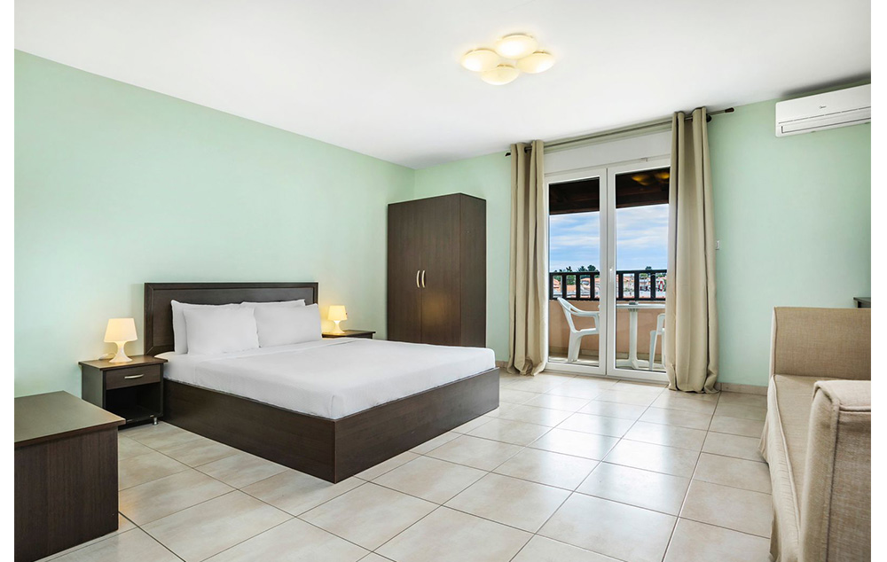 Dvokrevetni, trokrevetni i dvokrevetni + 2 (STD 1/2, STD 1/3, STD 1/2+2), prostrani studiji, sadrže opremljenu kuhinju, deo za spavanje sa francuskim ležajem, sofom 180 x 75 cm i ležajem na izvlačenje (190 x 75 cm, skoro kao standardni) i kupatilo. Veličina studija je cca 25 kvm + terasa.