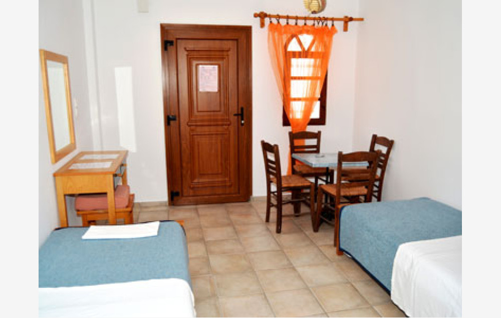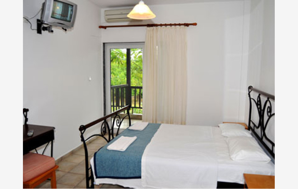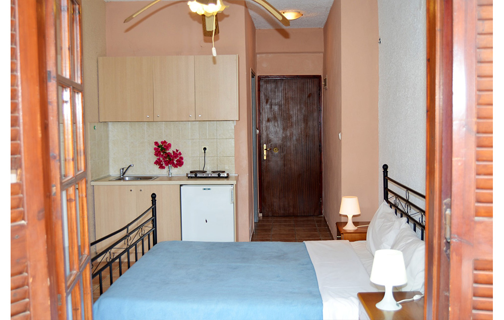Opis: Petridis je hotel apartmanskog tipa, smešten u okruženju uređenog, negovanog dvorišta sa puno zelenila. Raspolaže studijima predviđenim za smeštaj dve i tri osobe (grčki bračni i standardni krevet). Grčki bračni krevet u spavaćoj sobi, dva standardna kreveta u prostoriji u kojoj je smešten i kuhinjski deo.