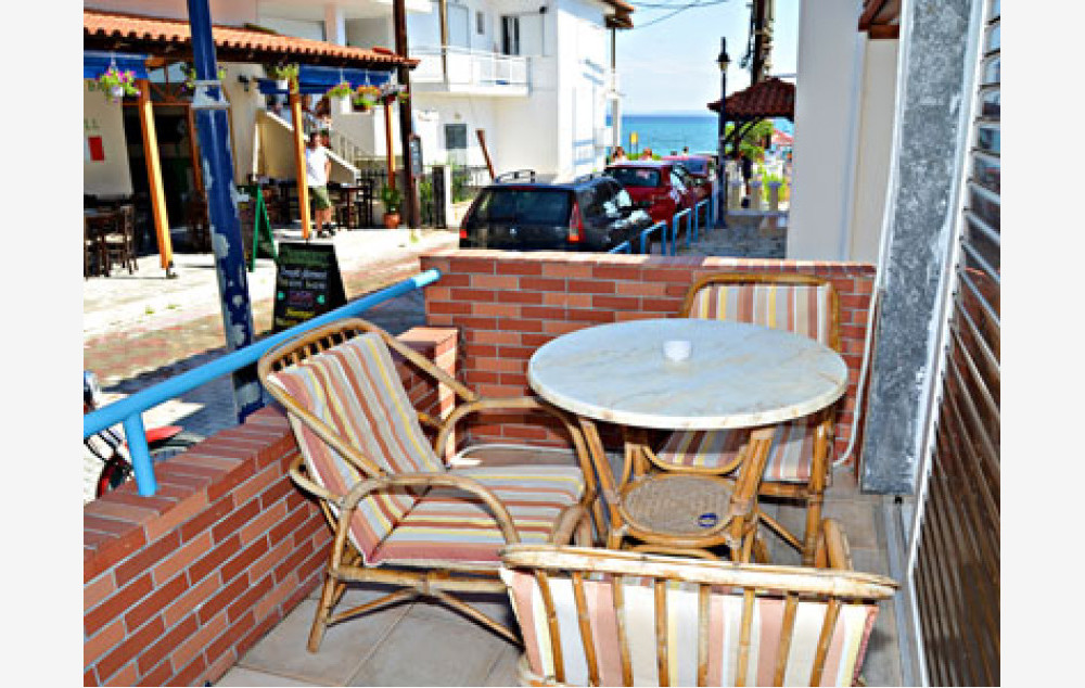 Na novijem, drugom spratu, nalaze se lepo i moderno dizajnirani studiji i apartmani iz kojih se bočno, sa terase vidi more.