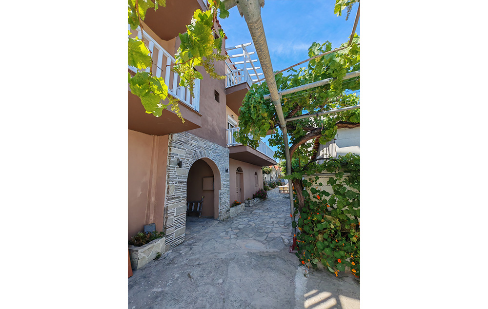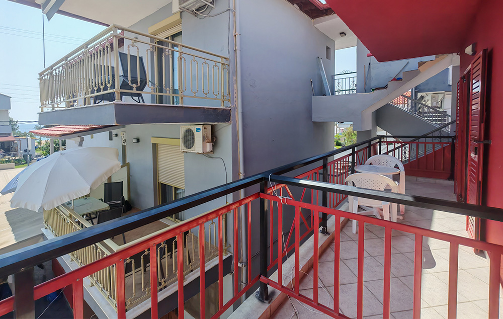 Kuća se nalazi na oko 70m od mora, odmah iza kuće Anna Studios (Sakis III). Studiji i apartmani se nalaze na spratu. Studiji su za dve do četiri osobe, a apartmani za pet osoba. U studijima se jedan ležaj manjih dimenzija nalazi u izdvojenom kuhinjskom delu, a jedna fotelja na rasklapanje u spavaćem delu. Kuća ima SAT TV, klima uređaje čije je korišćenje uključeno u cenu, kao i signal za besplatan WiFi.