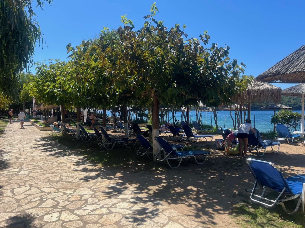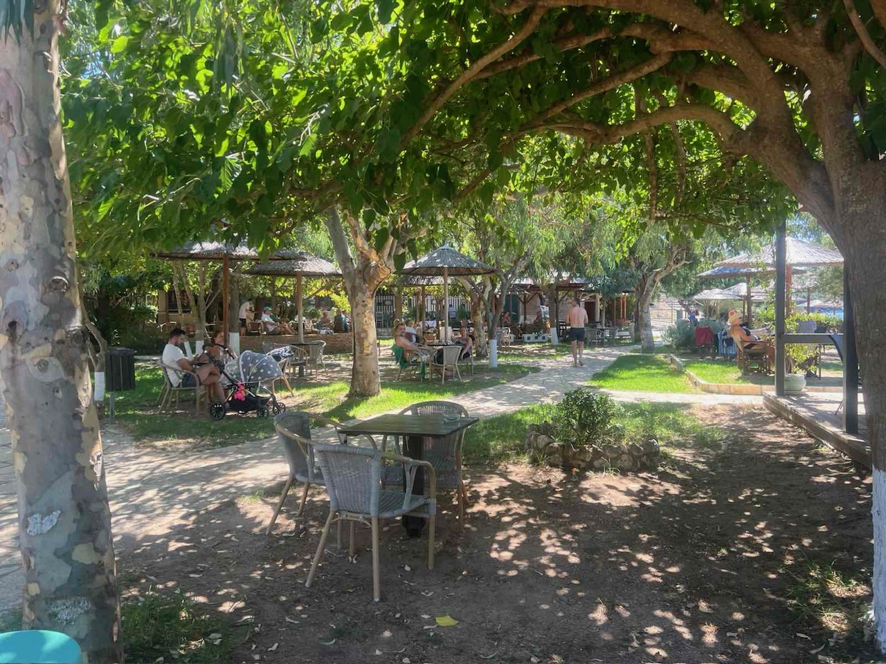 Vila Palm beach se nalazi na samoj gradskoj plaži Galikos Molos. Vila je udaljena od strogog centra – luke nekih 200 metara. Do centra i do prvog velikog Supermarketa se najbrže dolazi peške prelepom stazom pored mora, gde ćete neretko, pogotovo uveče videti turiste kako sede na nekoj od klupica i gledaju prelepi zalazak sunca. Sve potrebno se nalazi u blizini smeštaja, kao što su marketi, pekare, mesare, restorani, kafići, prodavnice i suvenirnice. Automobilom se dolazi do vile gornjim putem i jako je lepo povezan sa gradom. Za naše goste smo obezbedili parking. U sklopu same vile na plaži Galikos Molos se nalazi i Beach Bar i restoran, kao i ležaljke koje pripadaju baru. Našim gostima je u junu i septembru na raspolaganju besplatno korišćenje suncobrana i ležaljki u sklopu dvorišnog dela objekta, dok se u julu i avgustu plaća 5 eura po setu, dok korišćenje suncobrana i ležaljki na plaži je uz doplatu, dok turisti koji ne žele da koriste bar, mogu nesmetano sa svojim aksesoarom koristiti plažu. U neposrednoj blizini se nalazi i plaža Zeri Beach , pa gosti mogu birati plažu na kojoj će provoditi vreme. Izuzetna lokacija i blizina plaže i luke, pruža Vam mogućnost potpunog odmora i uživanja, kao i lepog provoda u centru grada uz samo nekoliko minuta prijatne šetnje.