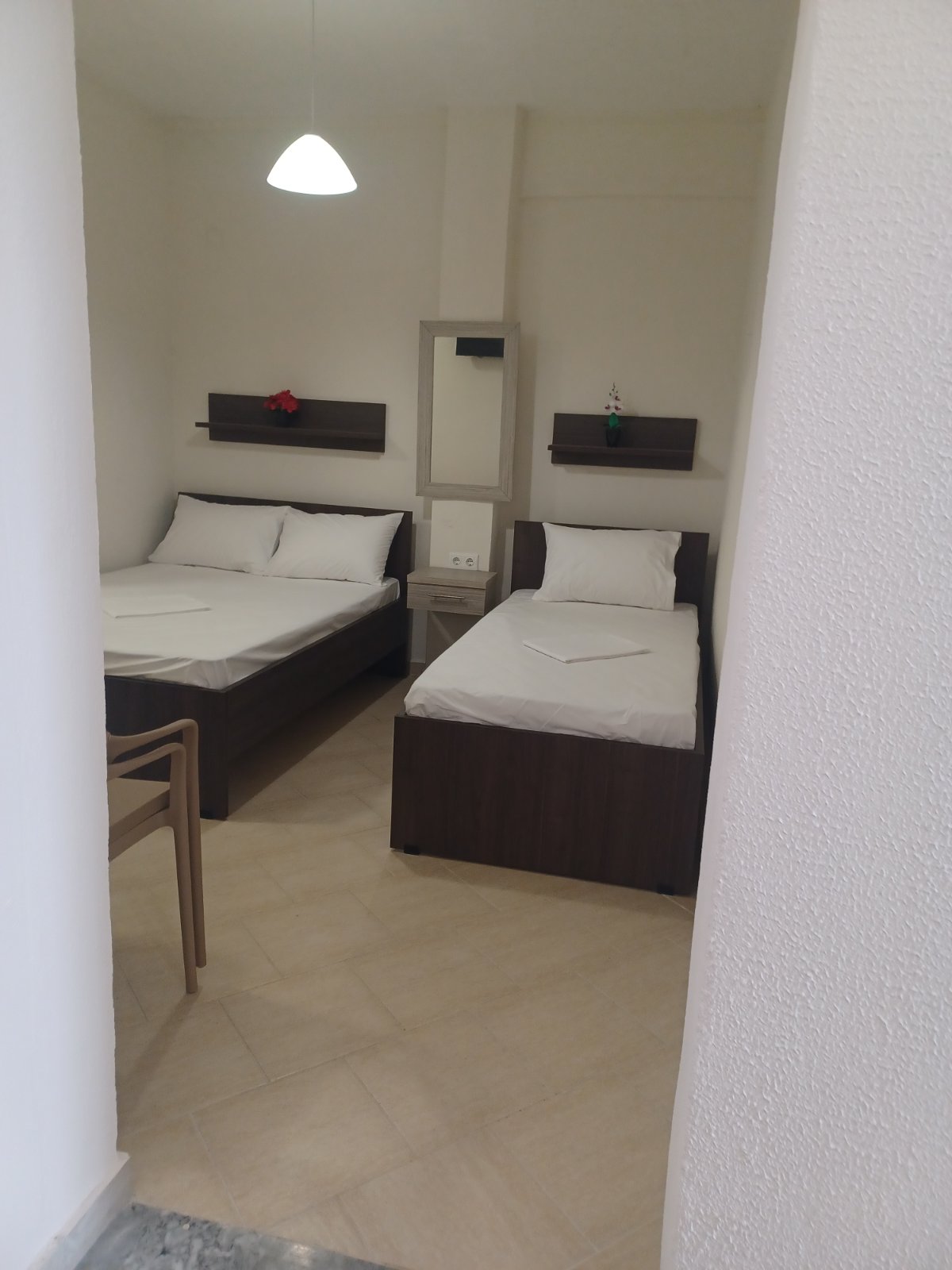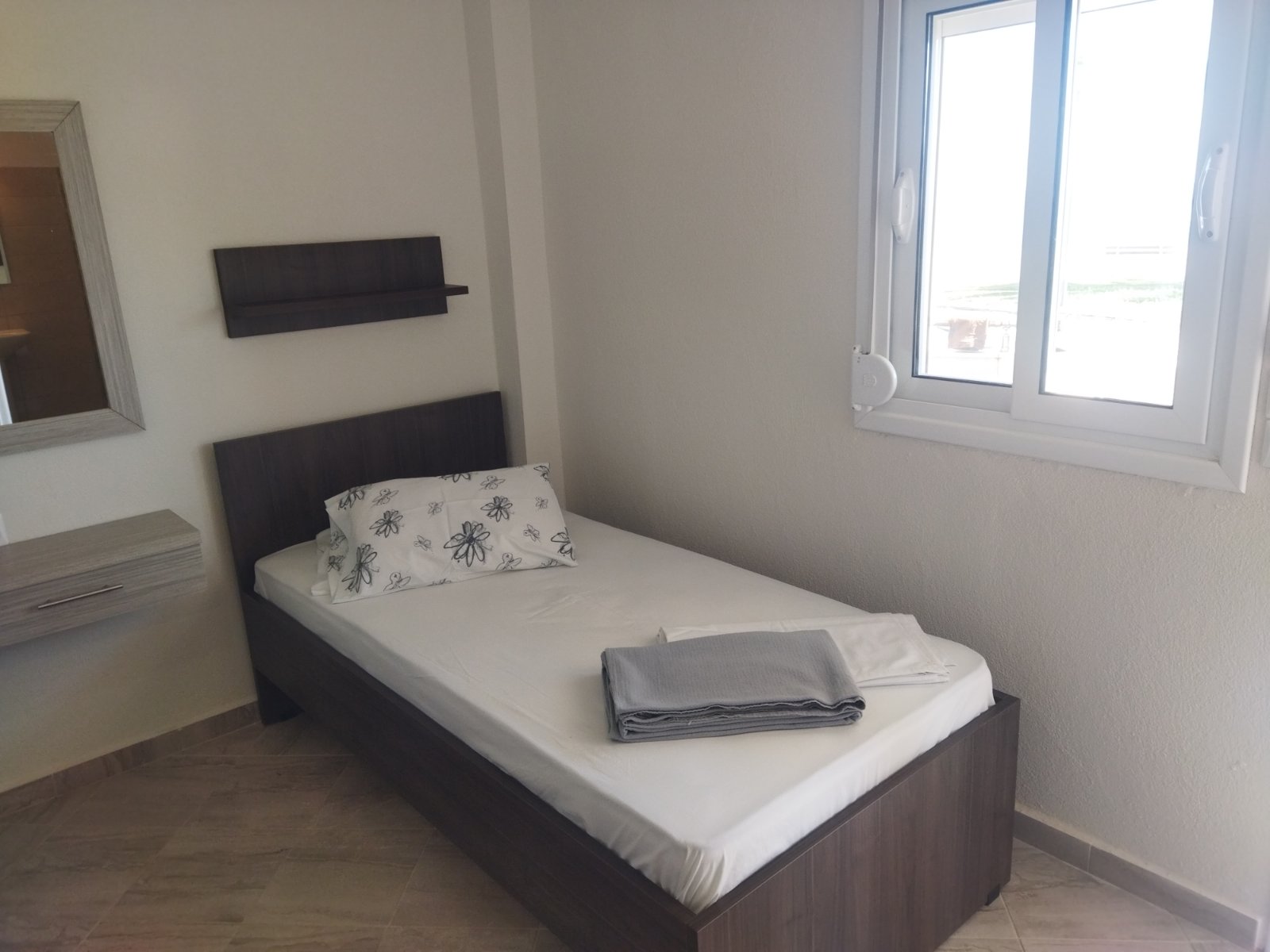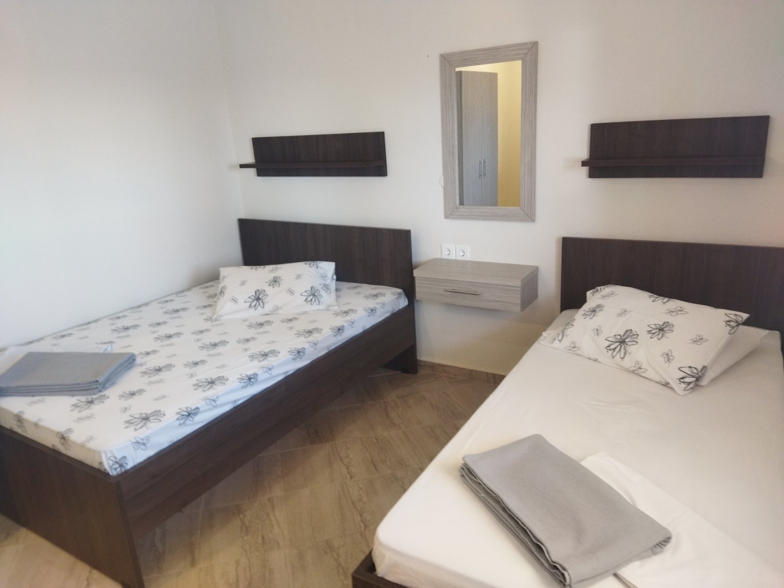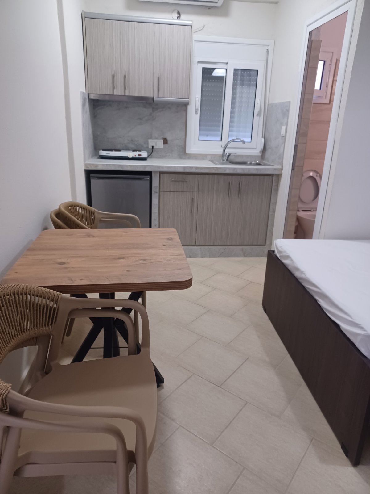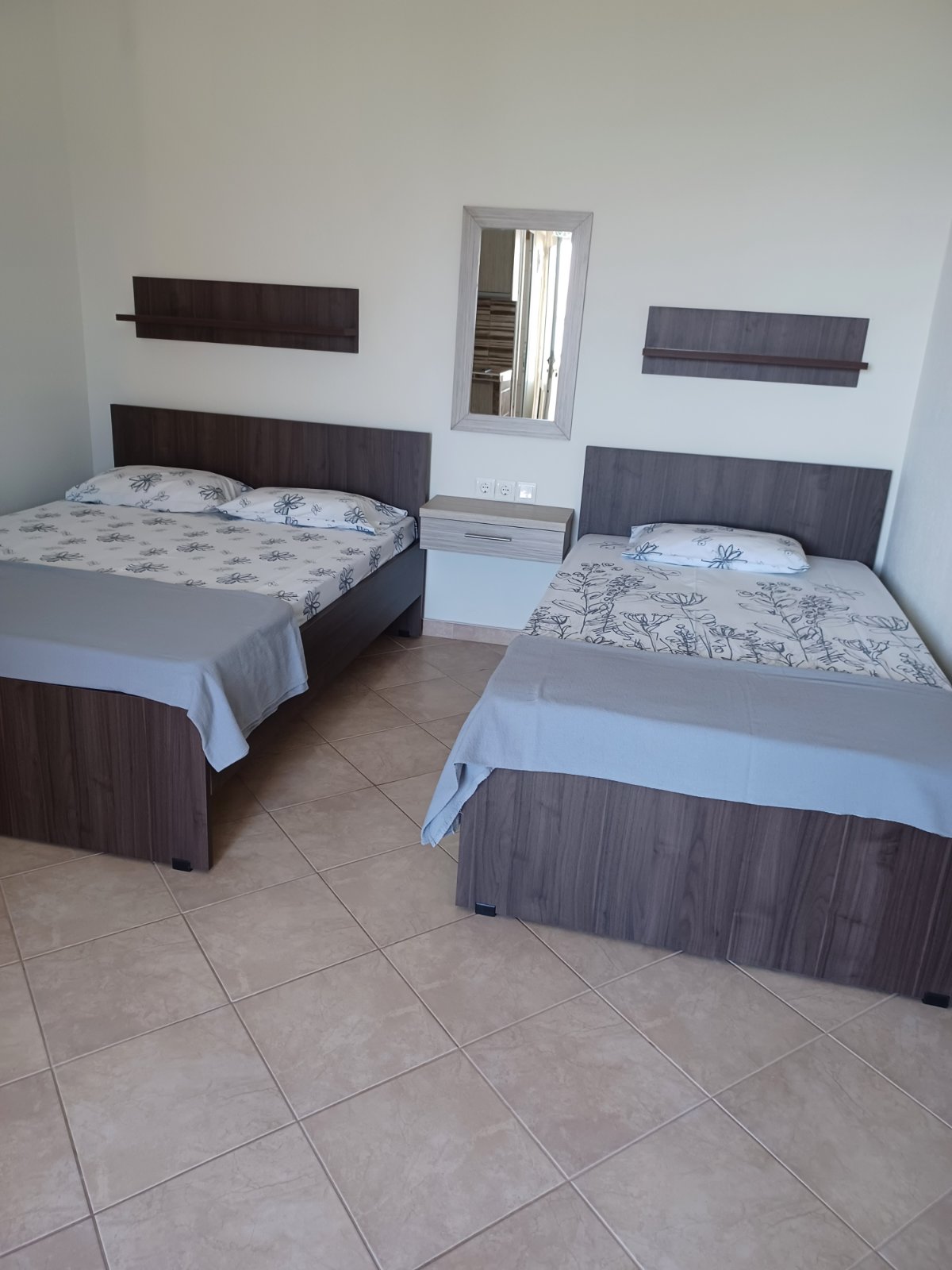 LOKACIJA: Vila se nalazi na 70m od plaže i uređenog šetališta. Fudbalsko igralište se nalazi u blizini. Centar Nea Vrasne nalazi se na 200m, dok je Asprovalta veoma blizu, na nekih 300m. USLUGA: Najam apartmana. SMEŠTAJ: Vila raspolaže 1/4 i 1/5 apartmanima ( app br.1 u spavaćoj 1F+1S u kuhinji 1S, app br.2 u spavaćoj 1F+2S u kuhinji 1S, app br.3 u spavaćoj 1F+1S u kuhinji 1S, app br.4 u spavaćoj 1F+1S u kuhinji 2S, app br.5 u spavaćoj 1F+1F manjih dimenzija u kuhinji 1S, app br.6 u spavaćoj 1F u kuhinji 2S, za maksimalno 4 odrasle i 1 dete do 6 god. ili 5 odrasle i 1 dete do 6 god.) i svi sadrže kupatilo, kompletno opremljenu kuhinju ,TV, klima uređaj (uz doplatu 5e na licu mesta) i terasu. SADRŽAJ: Besplatno korišćenje interneta. Vila ne poseduje peškire. Promena posteljine je na 5 dana, gosti sami održavaju higijenu. Parking nije obezbeđen.